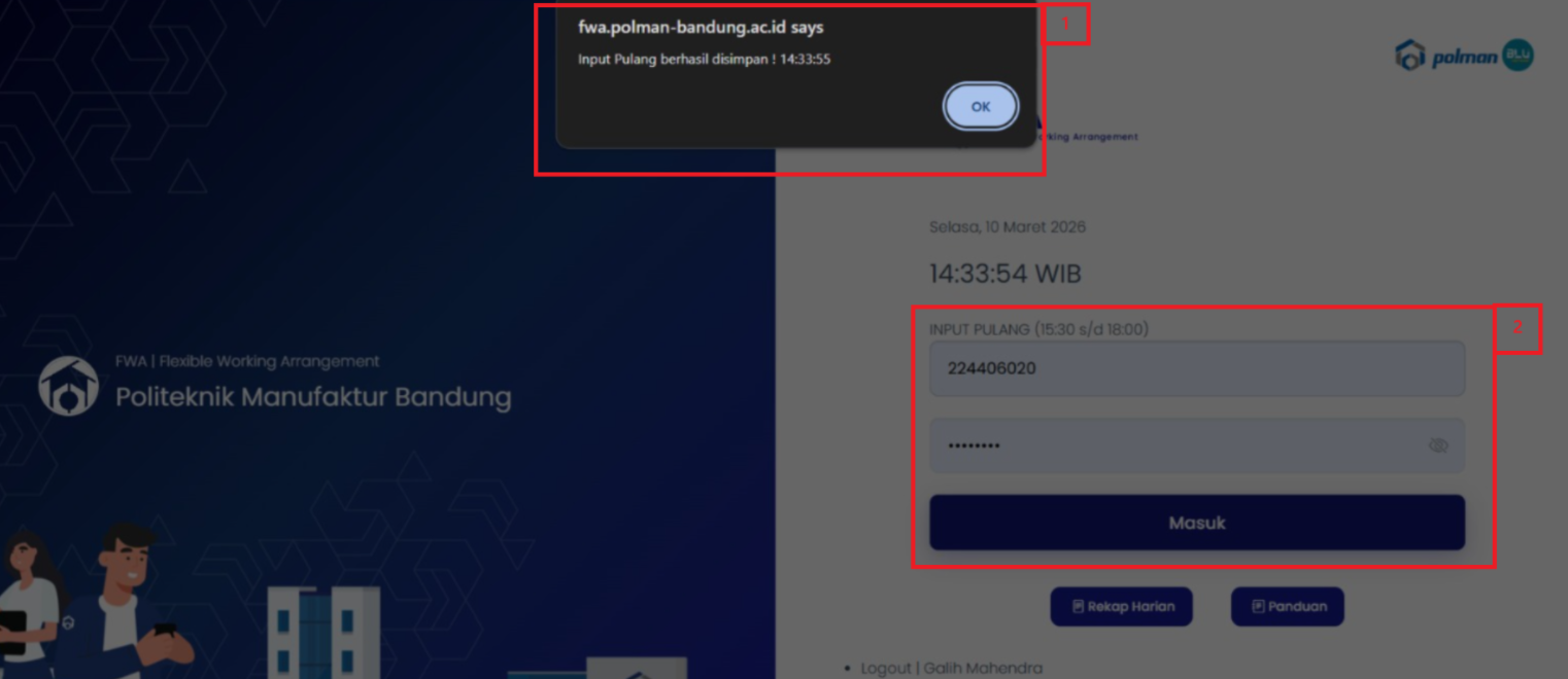 1. Akses ke alamat Flexible Working Arrangement Polman Bandung