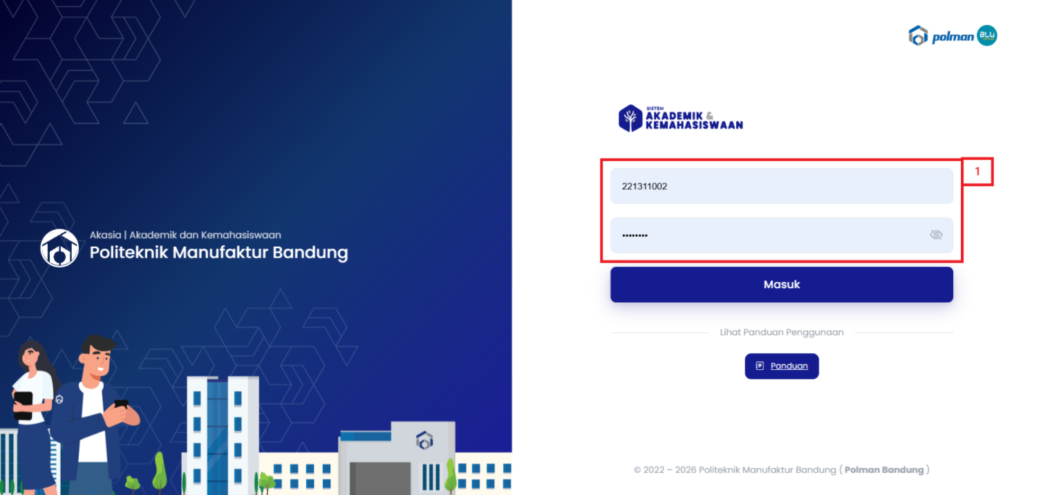 1. Akses ke alamat Sistem Akademik dan Kemahasiswaan Polman Bandung