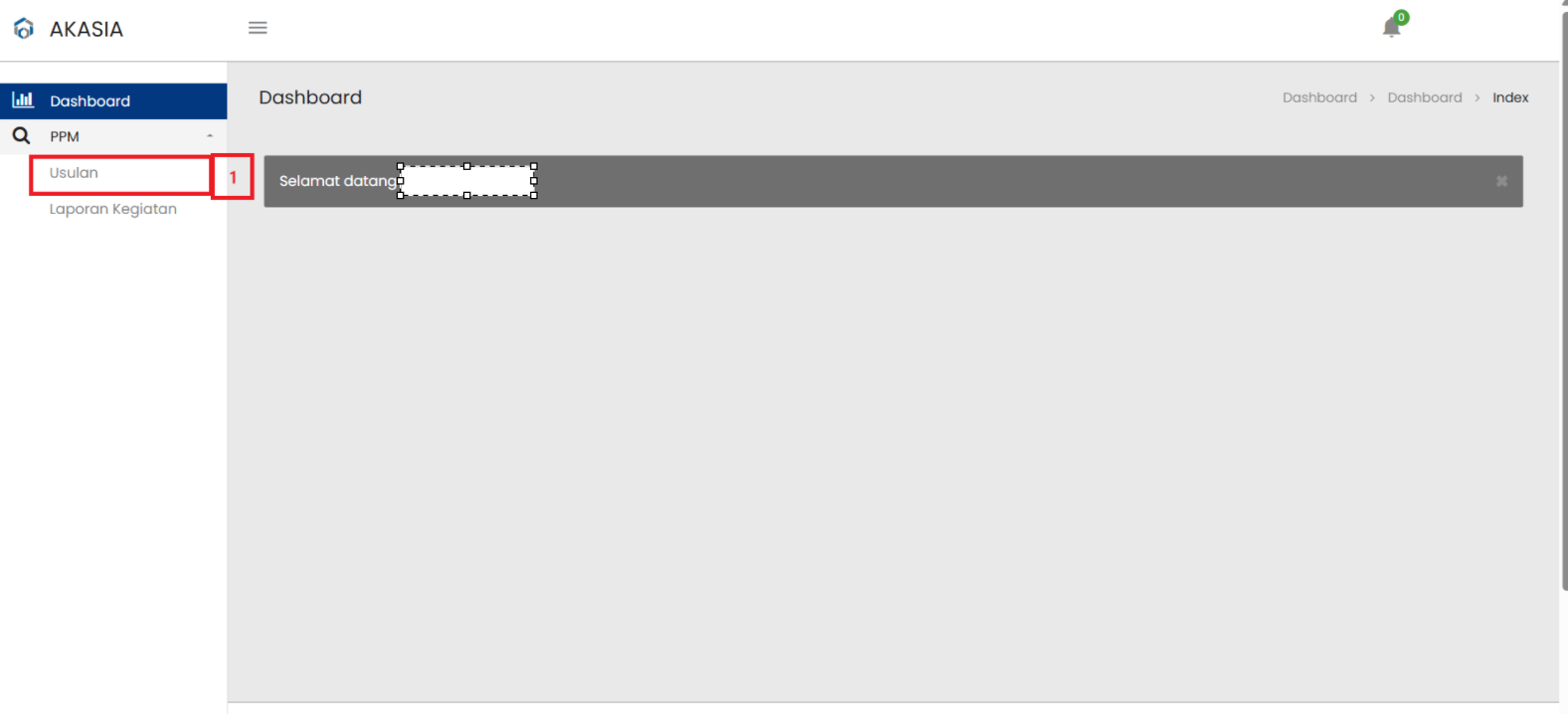 | 1 | Klik PPM, lalu klik Usulan untuk masuk ke halaman Usulan Penelitian |