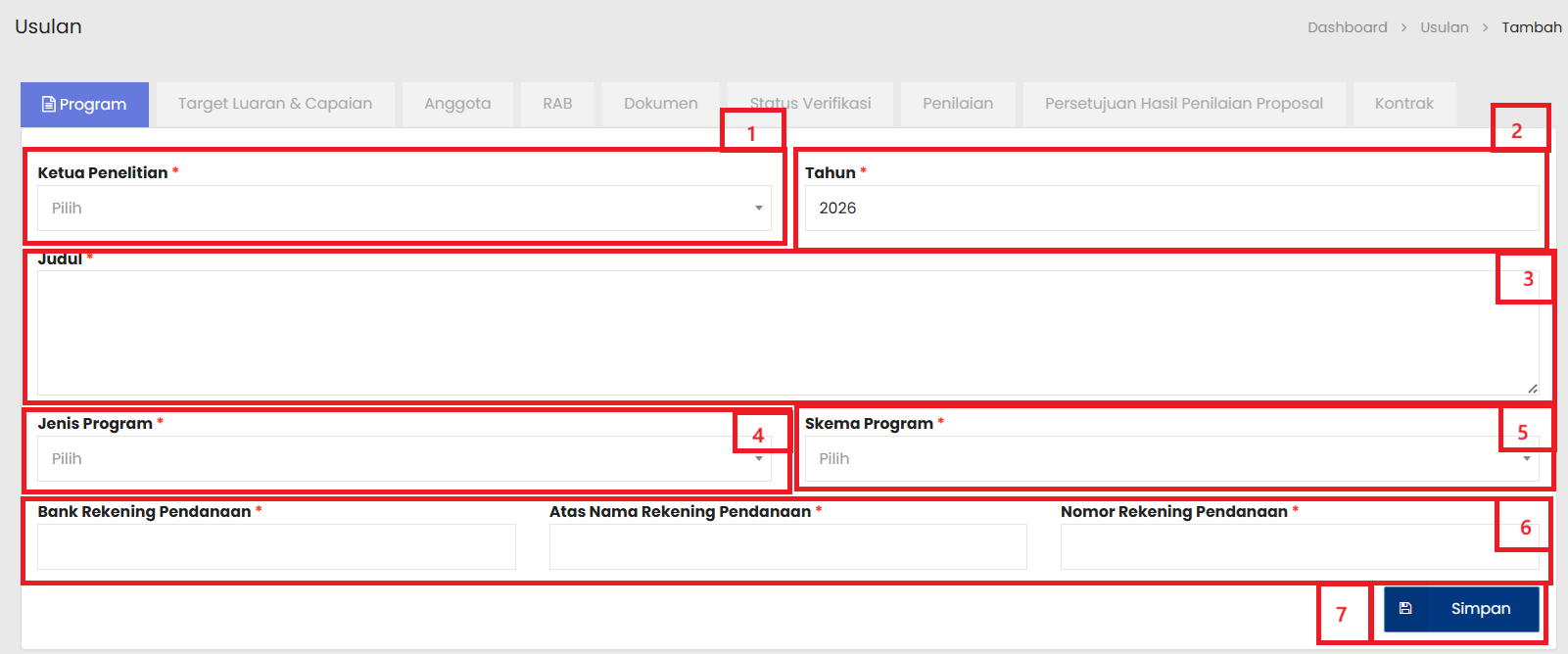| 1 | Pilih Ketua Penelitian |