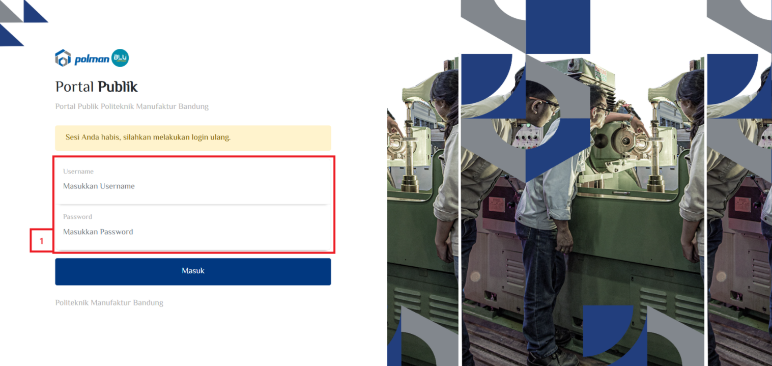 Lengkapi login dengan menggunakan username dan password seperti berikut: