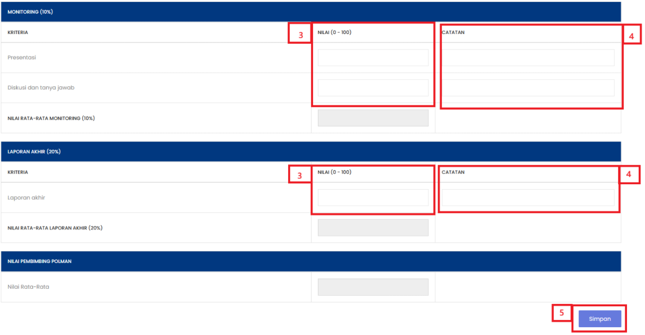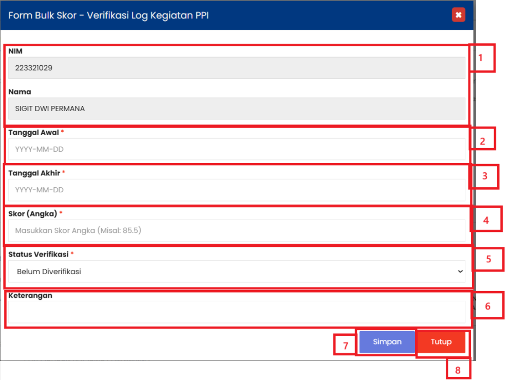 Diisi dengan Nilai untuk kegiatan mahasiswa dari awal tanggal yang dipilih hingga kegiatan tanggal akhir yang dipilih |