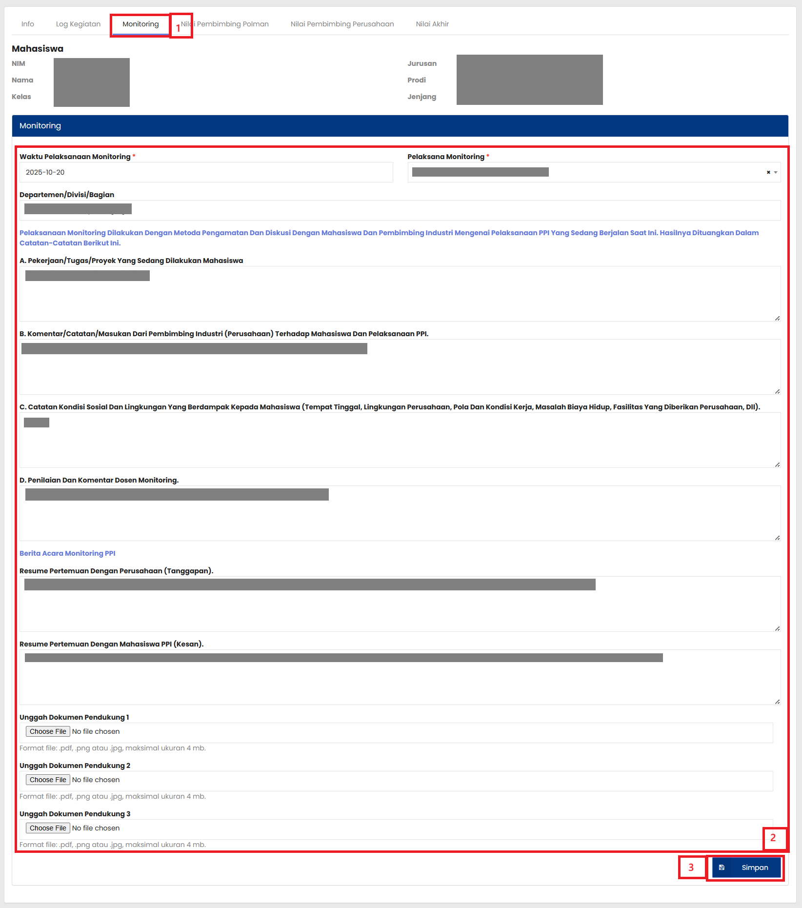 Fitur Monitoring dan Evaluasi PPI Mahasiswa