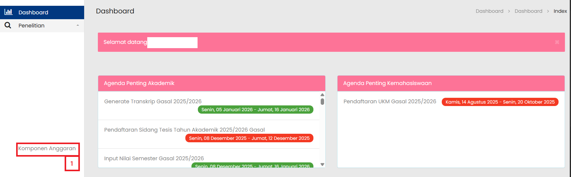 | 1 | Klik Komponen Anggaran untuk masuk ke halaman Komponen Anggaran |
