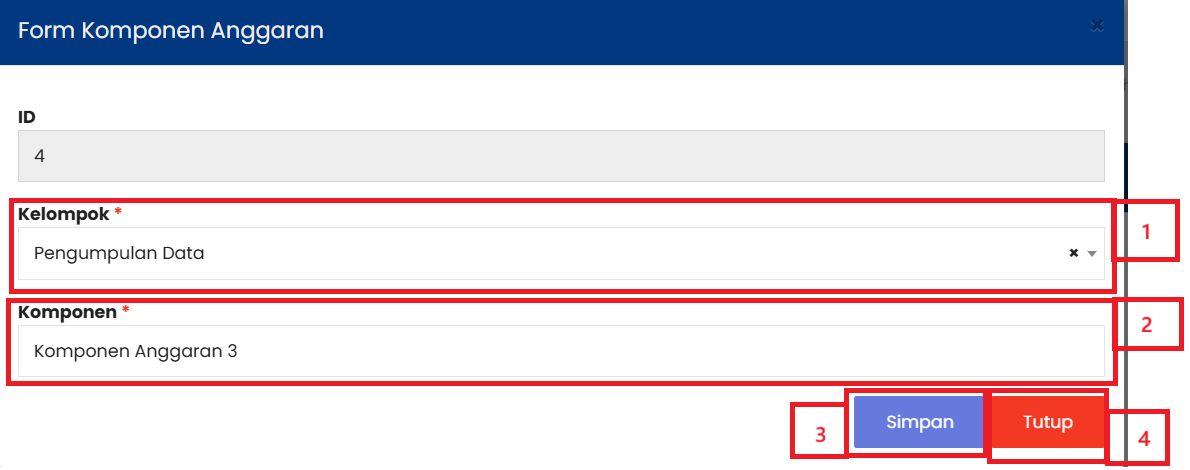 | 4 | Tombol Tutup digunakan untuk kembali ke menu sebelumnya |