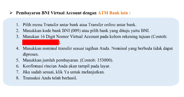 | 2 | No Virtual Account yang digunakan untuk melakukan pembayaran. |