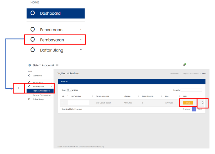 | 1 | Menu Pembayaran untuk melihat tagihan mahasiswa |