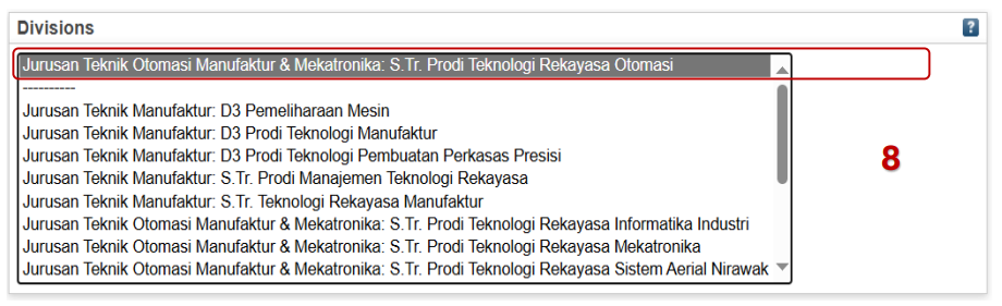 Division, pilih jurusan dan program studi sesuai jenjang pendidikan masing-masing |