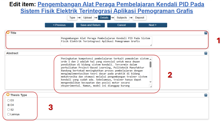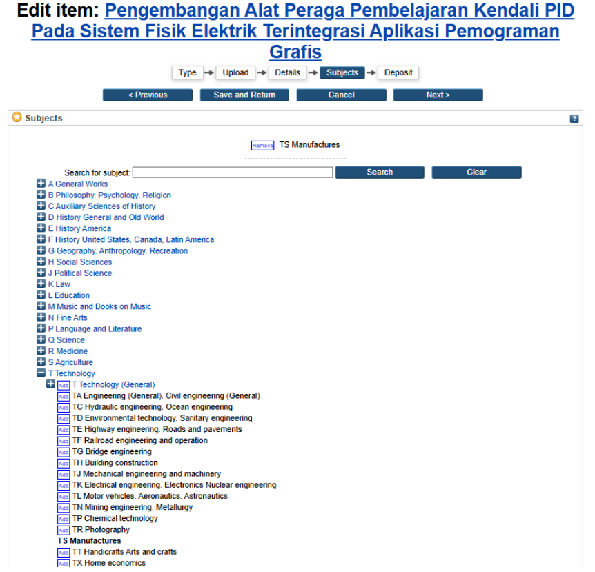 Uncontrolled Keywords, diisi dengan kata kunci yang terdapat pada halaman Abstrak |