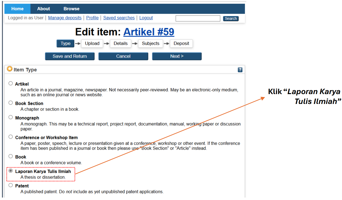 Langkah-langkah mengunggah file naskah karya ilmiah