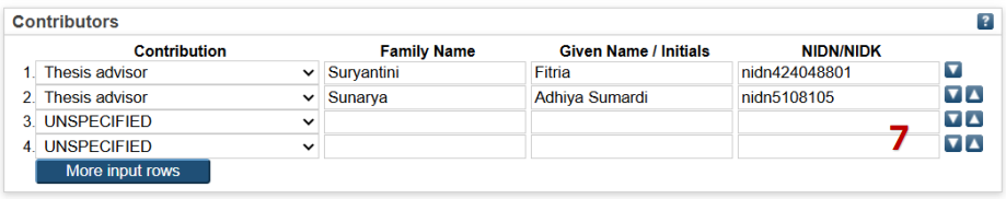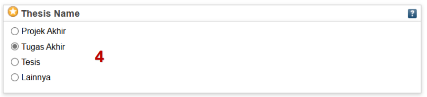 Pilih “Thesis Advisor” Isikan dosen pembimbing dengan nama belakang pada kolom |