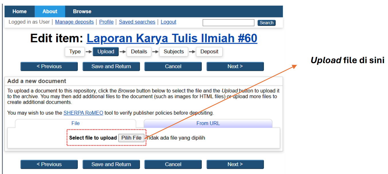 2. Pastikan file karya ilmiah yang diunggah telah disahkan oleh pihak berwenang sesuai