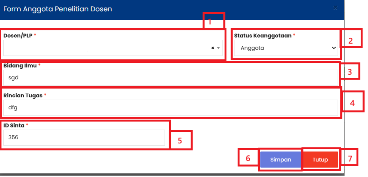 | 1 | Pilih Anggota Penelitian Dosen/PLP dari Daftar yang ada |