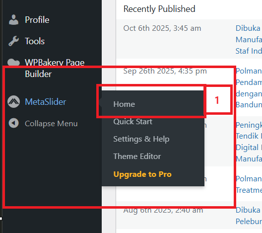 Klik "Home" untuk masuk ke MetaSlider |