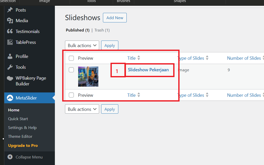 2. Masuk Menu MetaSlider